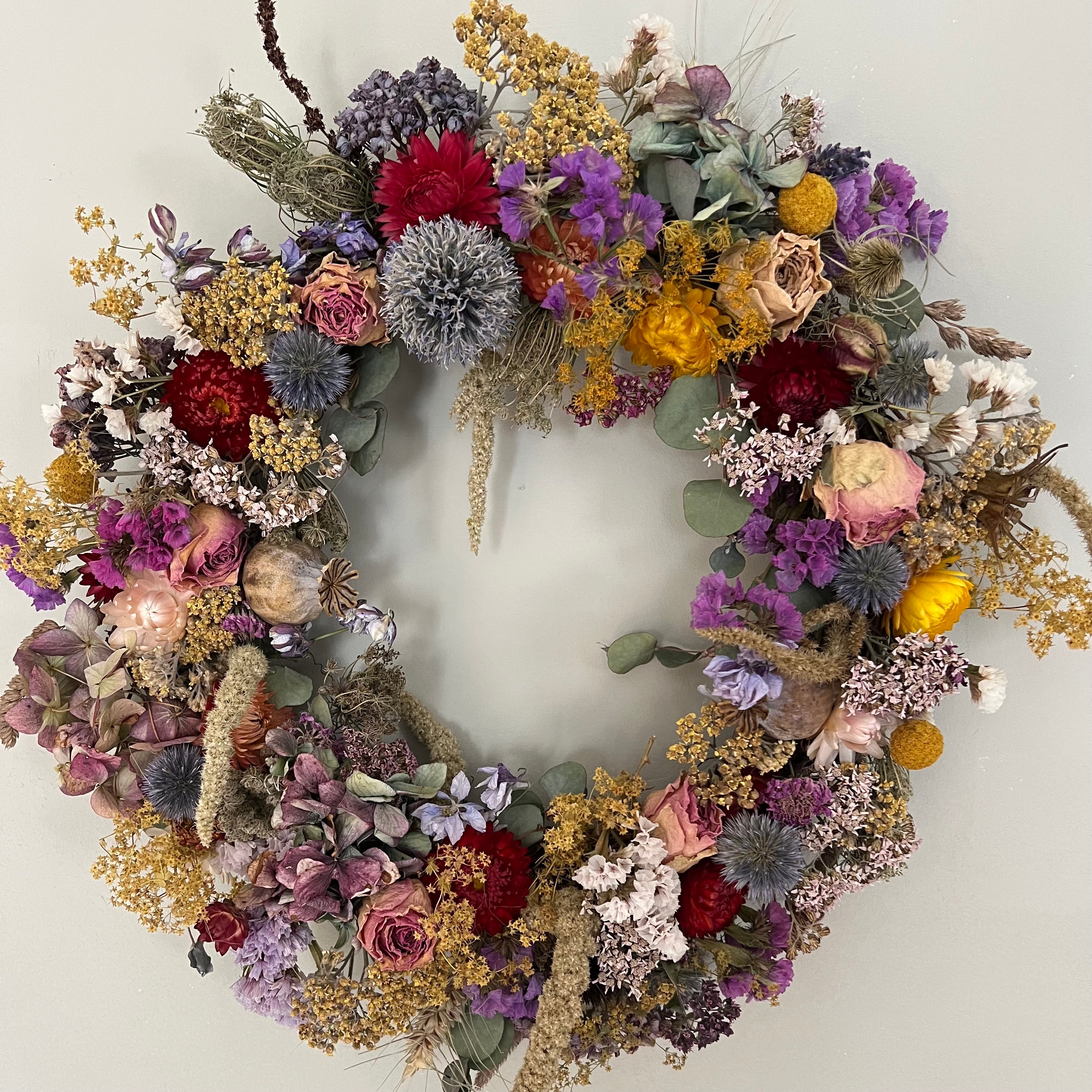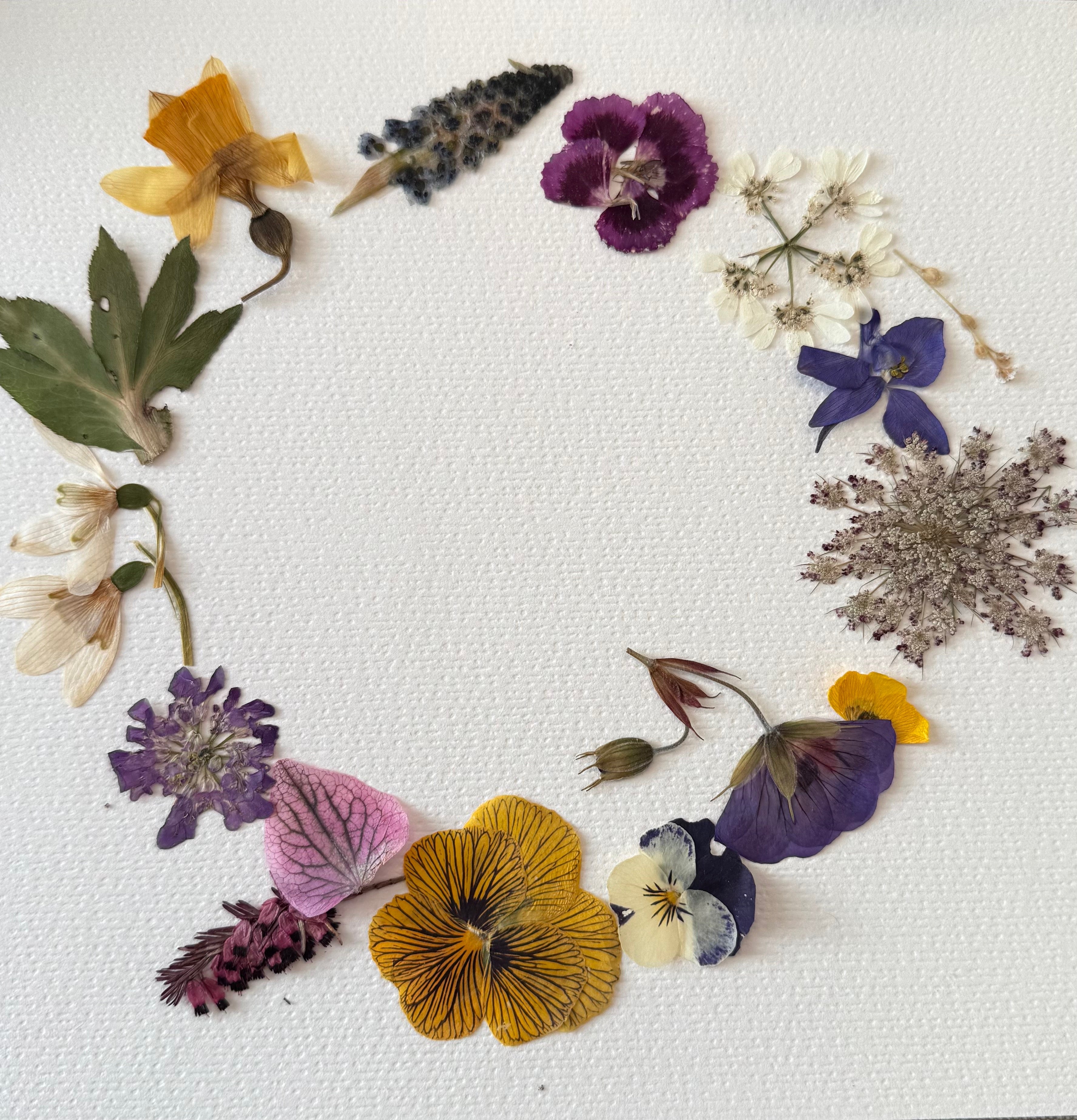 A monthly note from Home Farm Flowers & Crafts — seasonal sowing and growing, wedding flower musings, studio updates (pressed & dried work), Daisy moments, and one gentle creative idea to try at home.