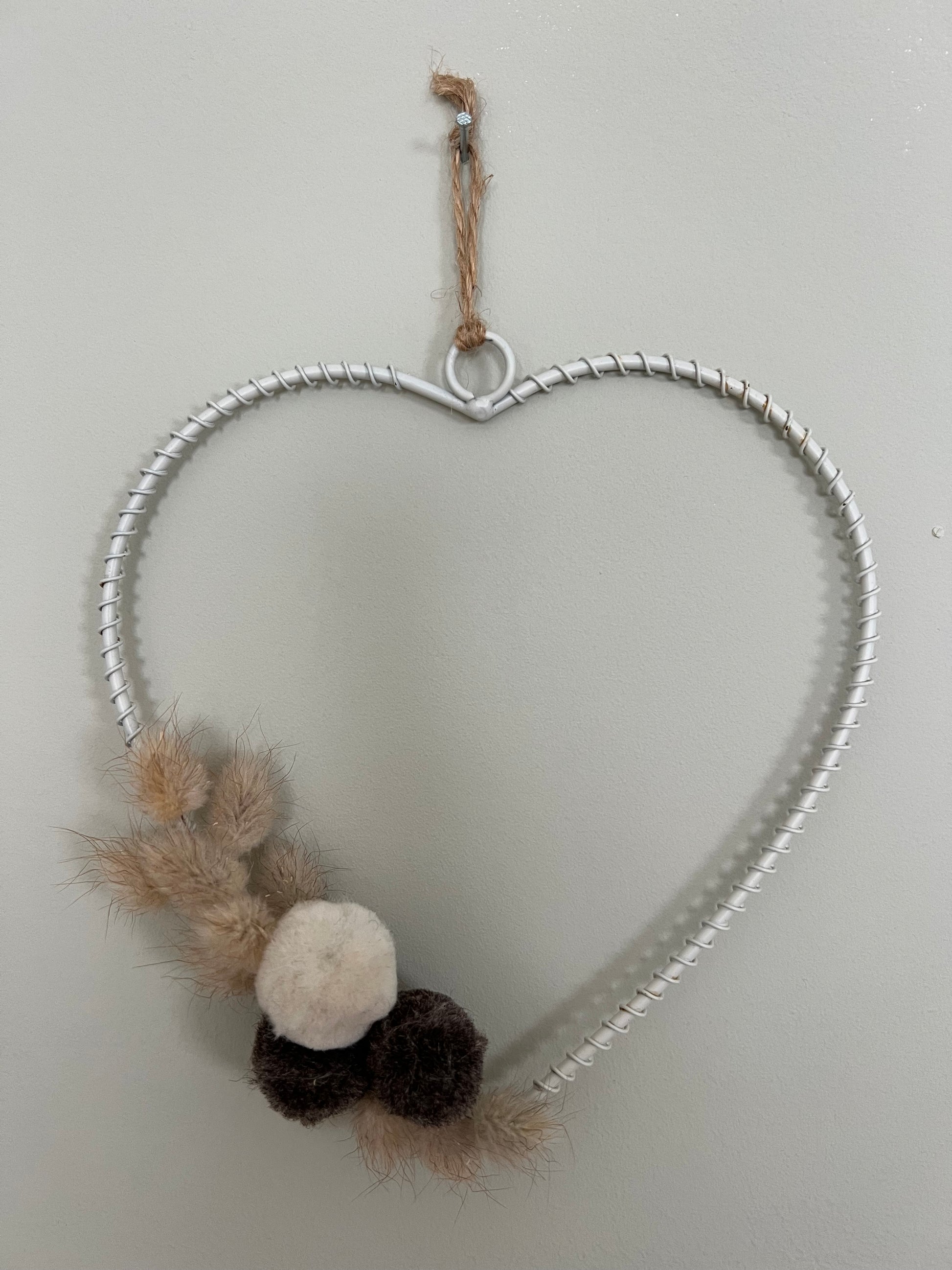 Wire heart embellished with our own dried flowers & merino wool ‘Wooly blooms’.