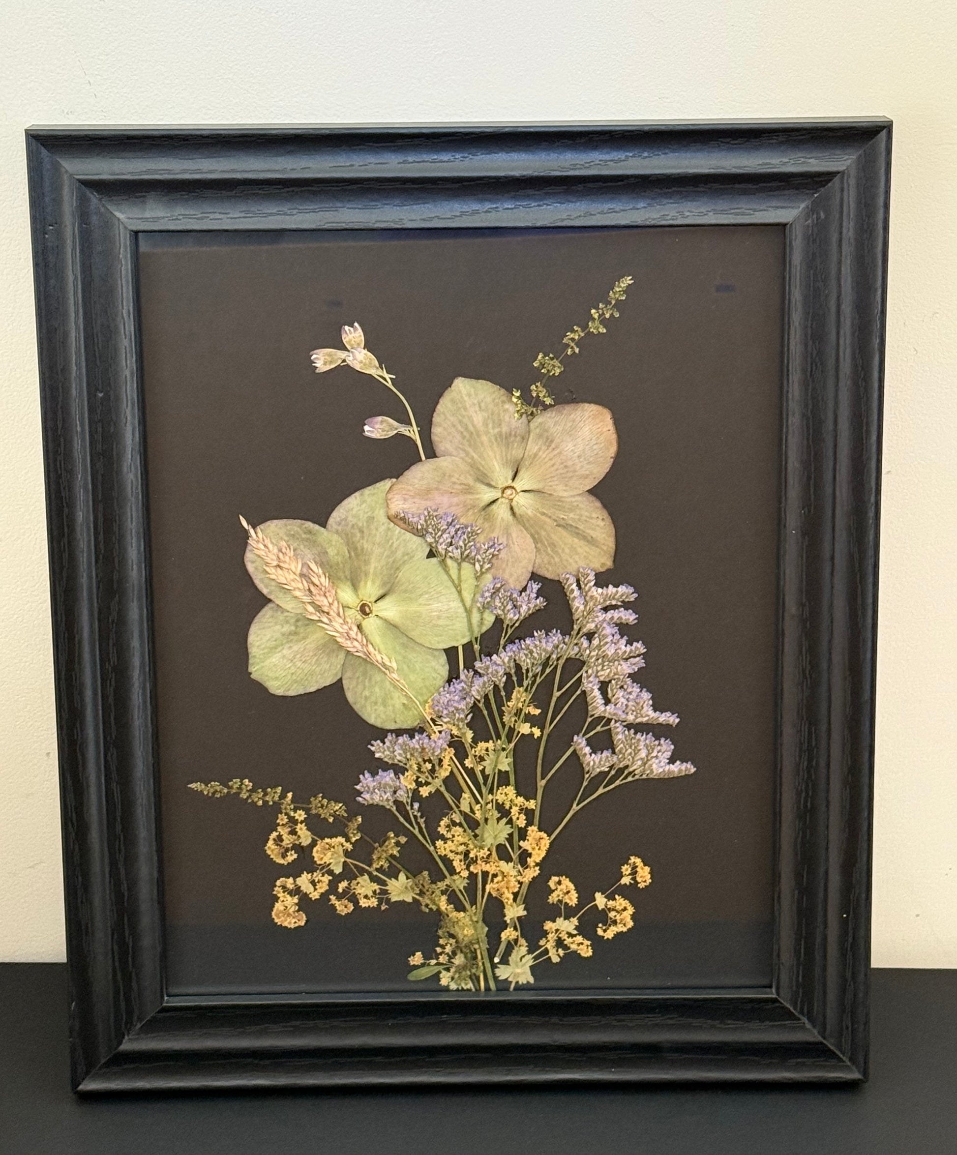 Handcrafted at our Scottish farm and presented in a black frame (25cm x 30cm) against a dramatic black background, this piece captures the wild beauty of a garden meadow in full bloom.