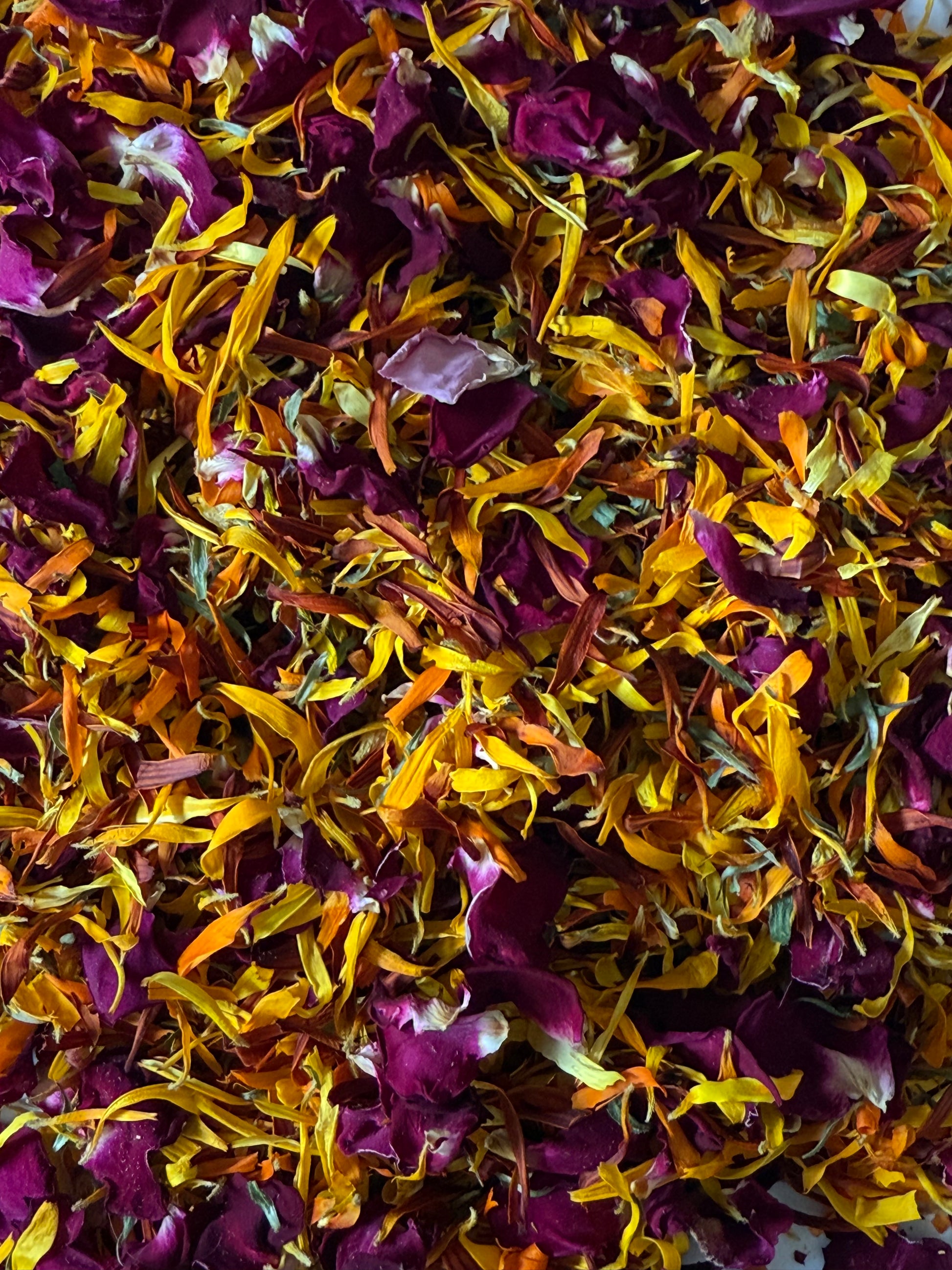 Eco-Friendly Process: All flowers are grown without herbicides and pesticides, then carefully dehydrated using our solar powered dehydrator to preserve their natural beauty and flavour.