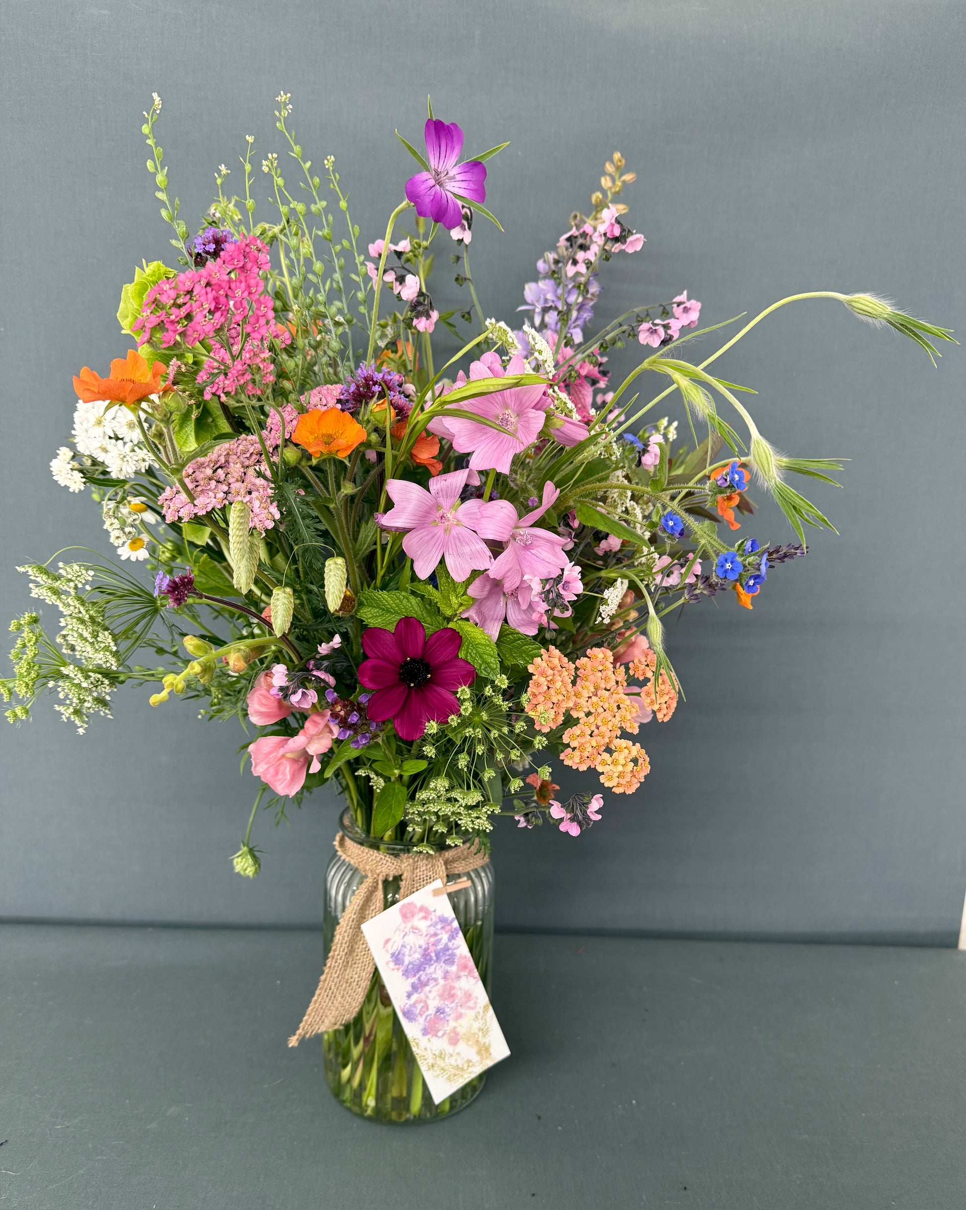 The pictures below are examples of our season 2024/2025 blooms, we work with the seasons and do not use any harmful chemicals or pesticides. Each arrangement is unique based on what we are growing at the time, you will always be guaranteed a lovely freshly picked seasonal arrangement!