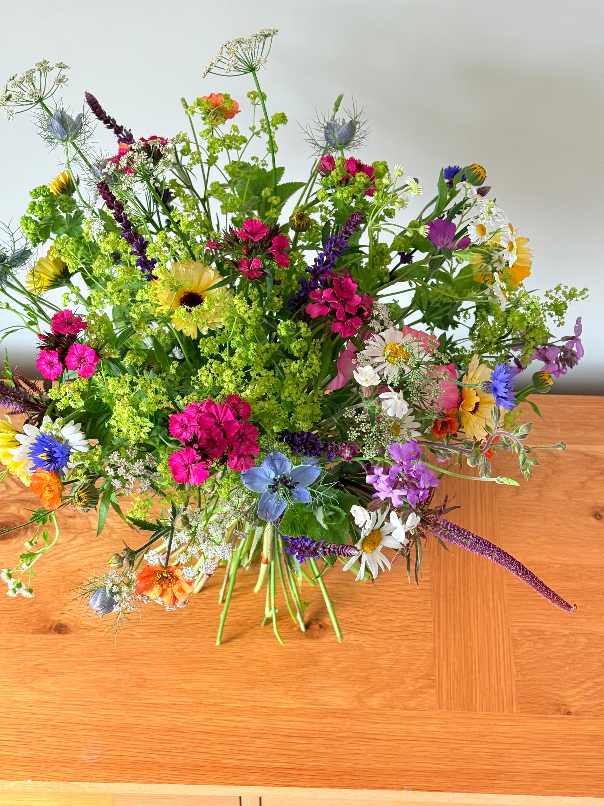 With a focus on local provenance and zero air miles, our flowers depend on the ever-changing seasons for their beauty and variety. Available from April to September (October if we are lucky with Mother Nature!). While we strive to match your colour scheme, please keep in mind that nature is unpredictable and our designs will reflect the natural abundance of the season.