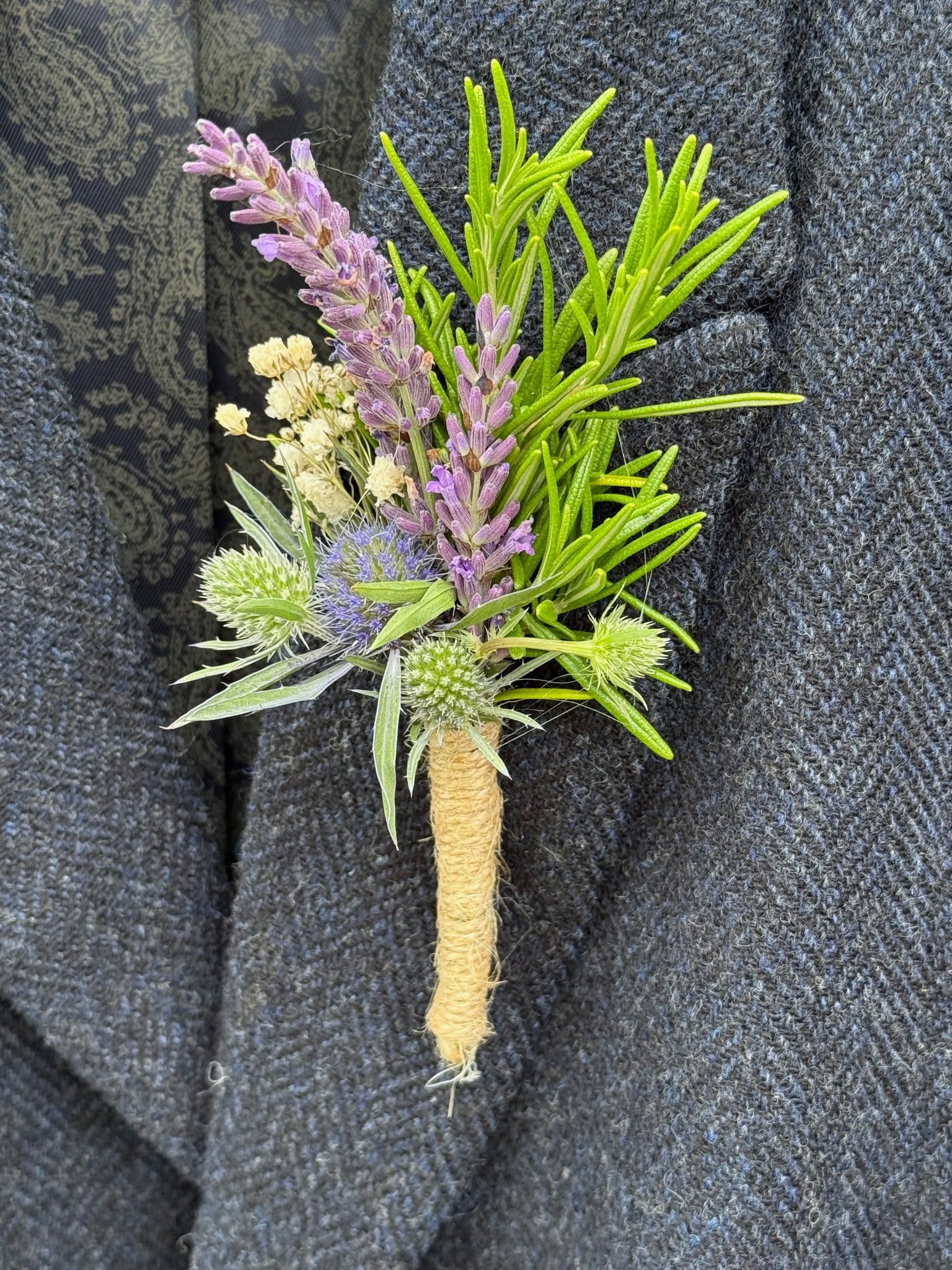 Our bouquets are supplied in glass jars and packaged in boxes with tissue paper for safe travel. They can be stored somewhere cool and dark until the wedding day. Care notes are supplied with the bouquets at the time.
