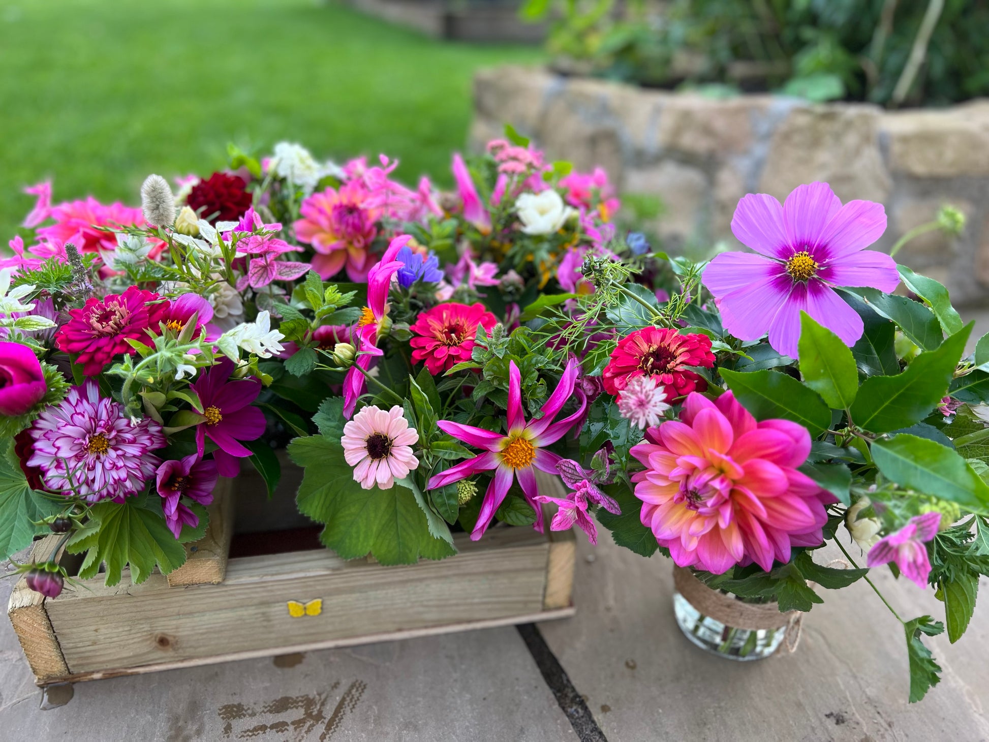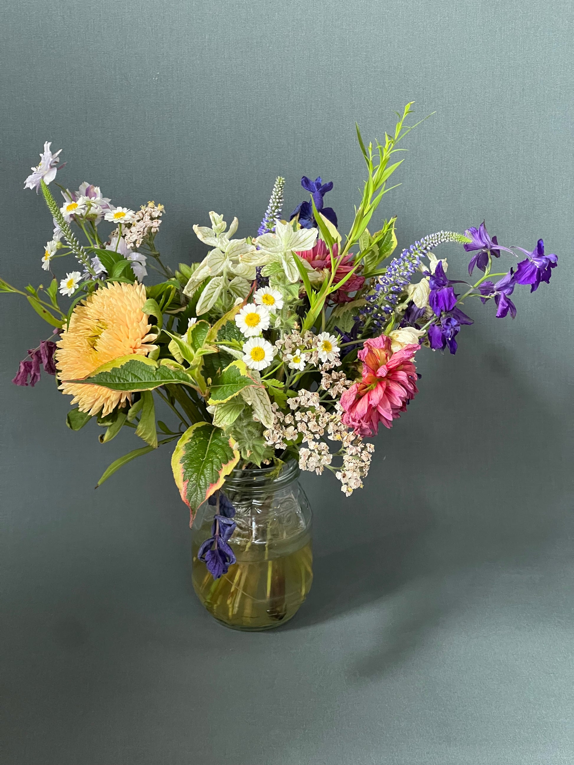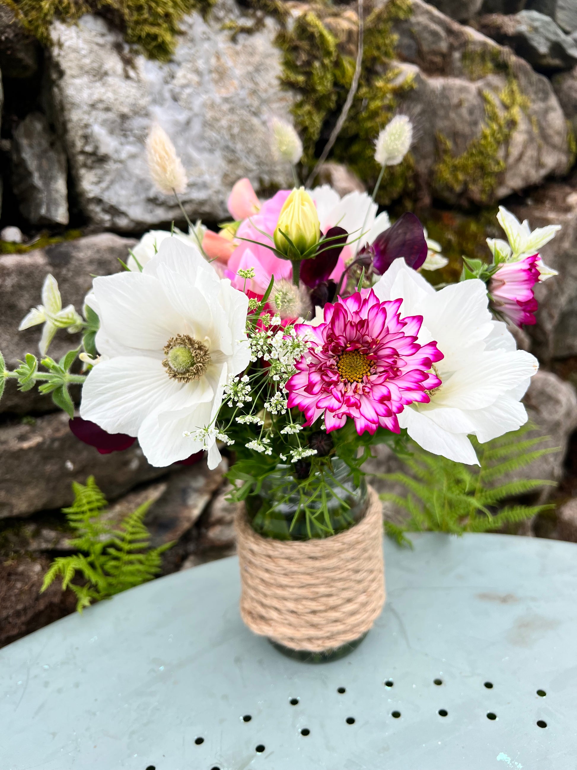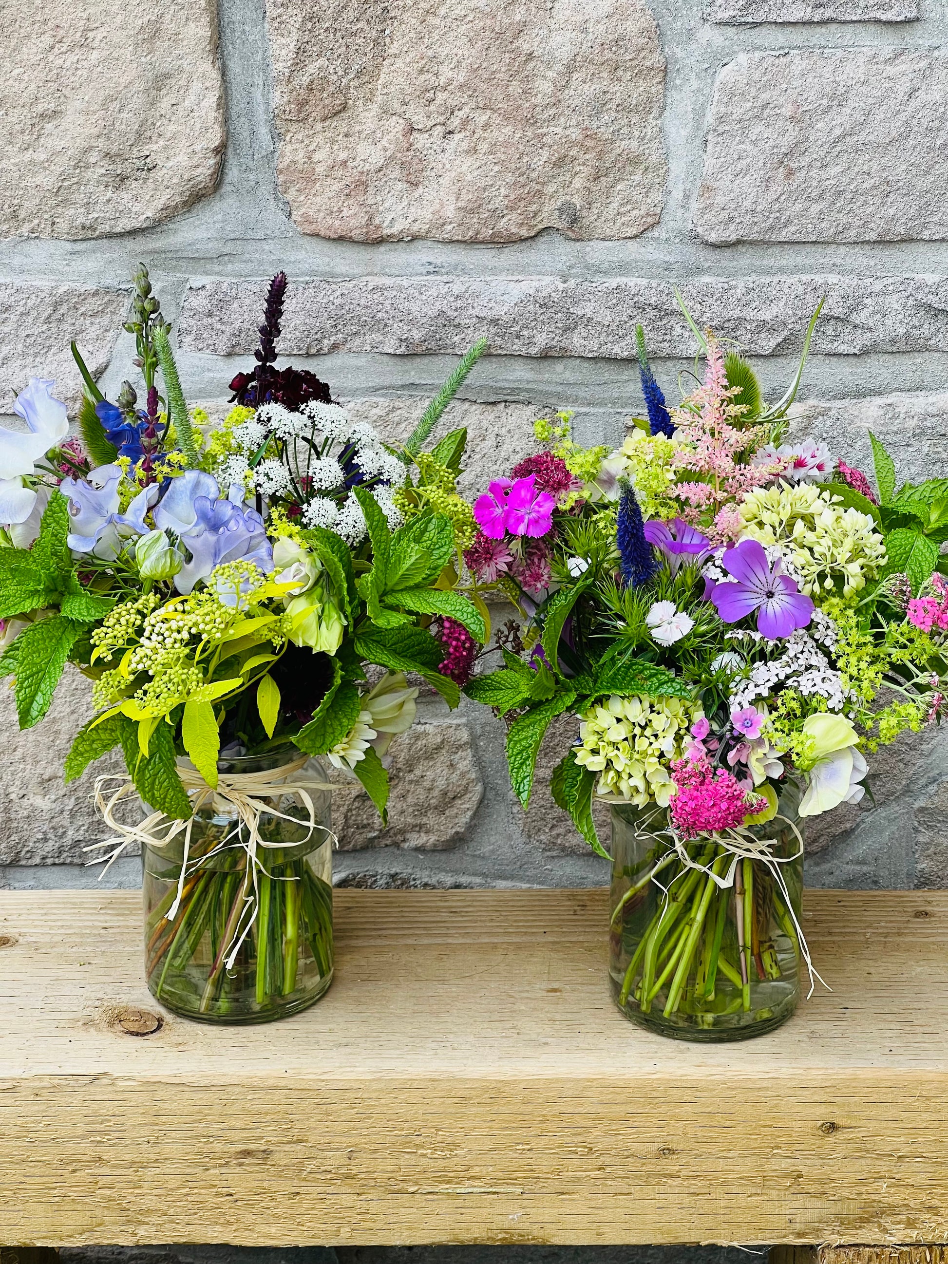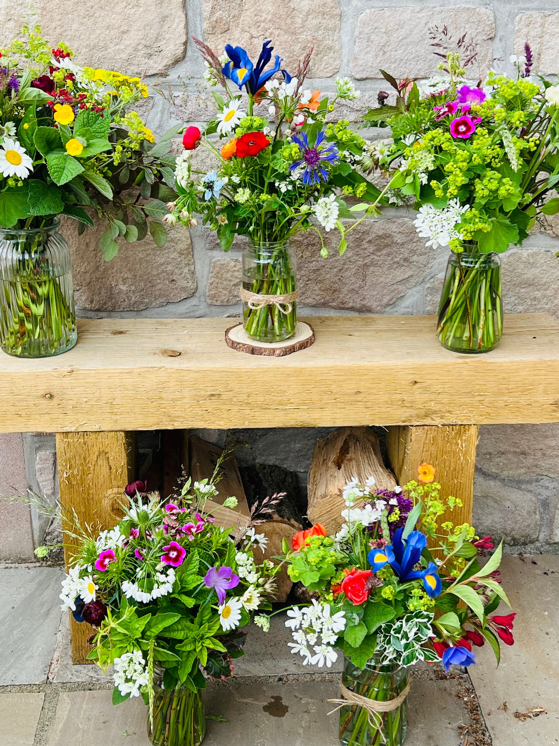 If you are looking for flowers for your wedding venue that are different, wild, romantic, whimsical, scented & gentle on the environment, we can supply low vase arrangements made from our own home grown flowers.