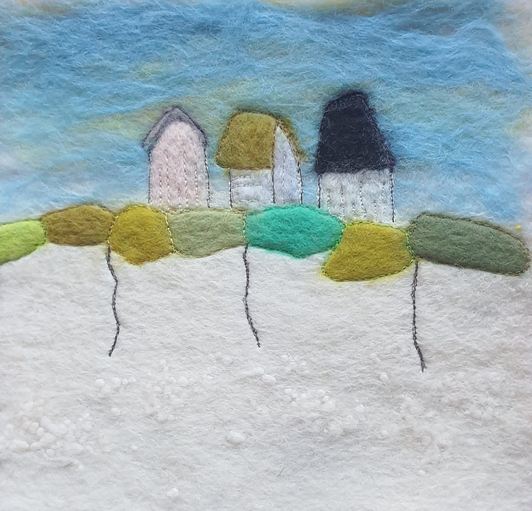 We use wool and other fibres to wet and needle felt to a base to create these beautiful works of art.